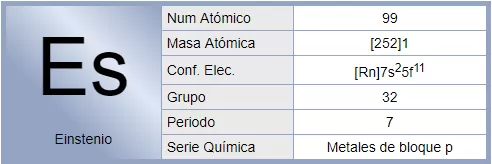 El einstenio (antiguamente también llamado atenio) es un elemento sintético de la tabla periódica cuyo símbolo es Es y su número atómico es 99.