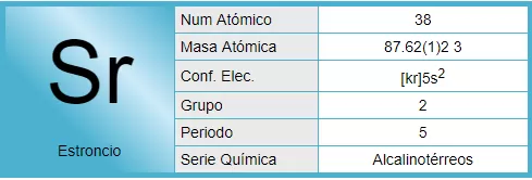 El estroncio es un elemento químico de la tabla periódica cuyo símbolo es Sr y su número atómico es 38. Es un metal blando de color plateado brillante, algo maleable, también alcalinotérreo, que rápidamente se oxida en presencia de aire adquiriendo un tono amarillento por la formación de óxido, por lo que debe conservarse sumergido en parafina. Debido a su elevada reactividad el metal se encuentra en la naturaleza combinado con otros elementos formando compuestos. Reacciona rápidamente con el agua liberando hidrógeno molecular para formar el hidróxido de estroncio.