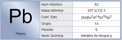 El plomo es un elemento químico de la tabla periódica, cuyo símbolo es Pb y su número atómico es 82 según la tabla actual, ya que no formaba parte en la tabla periódica de Mendeléyev. Este químico no lo reconocía como un elemento metálico común por su gran elasticidad molecular. Cabe destacar que la elasticidad de este elemento depende de la temperatura ambiente, la cual distiende sus átomos, o los extiende.