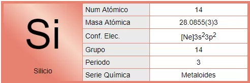 El silicio es un elemento químico metaloide, número atómico 14 y situado en el grupo 14 de la tabla periódica de los elementos de símbolo Si. Es el segundo elemento más abundante en la corteza terrestre (27,7 % en peso) después del oxígeno. Se presenta en forma amorfa y cristalizada; el primero es un polvo parduzco, más activo que la variante cristalina, que se presenta en octaedros de color azul grisáceo y brillo metálico.